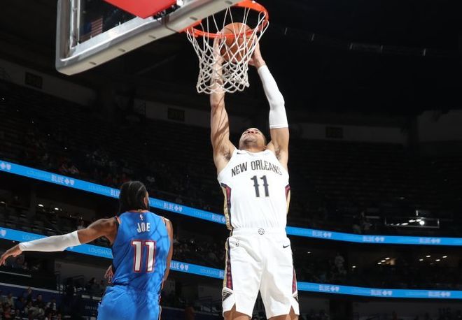 在本场比赛前,亚历山大已经连续86场常规赛拿到20+以上得分,历史第三,仅次于张伯伦(126场)和威少(87场)。而本场比赛最大的阻碍,就是鹈鹕实力实在太差,很可能等不到亚历山大拿到20+,他们就缴械投降!鹈鹕开赛以来2胜11负,只赢过独行侠和黄蜂。球队场均得分108.2分联盟垫底,百回合净效率值-13.5联盟第28位。和雷霆类似,球队也饱受伤病困扰,穆雷的跟腱重伤至少休战到明年1月份,普尔遭遇四头肌伤势,至少缺阵1周时间,锡安也遭遇腿筋伤势,进攻火力点萨迪克贝也遭遇脚踝伤势。