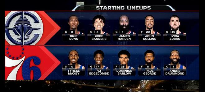 快船(客队):哈登、邓恩、桑德斯、科林斯、祖巴茨!